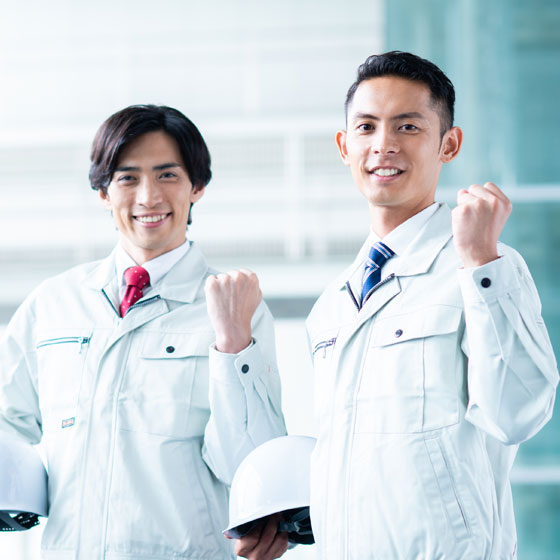 建物外周部の沈下量、室内床の傾斜、床下の状態や基礎の劣化状況などを詳細に測定、把握し、地盤調査データを加えた資料により検討を行い最適な対策工法を提案します。工法選定後にお見積りを提出させていただきますので、内容をご検討ください。ご検討後、大九産業で工事をさせていただくことになった際には、資材の手配や人員の配置など行うため、事前にご契約を締結させていただいています。