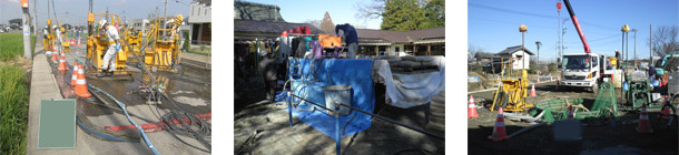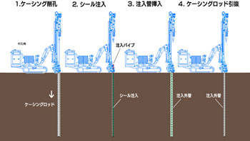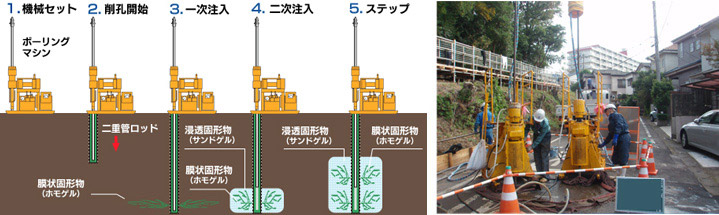 工事の主な目的は傾斜復旧、地盤強化、空洞充填となります。