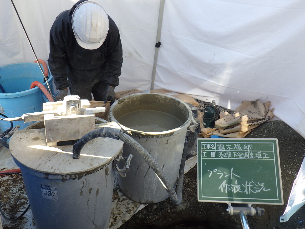 一般のセメント系グラウト剤に比べ、軽量化、流動性に優れているため、軟弱地盤上の沈下低減や、構造物への土圧低減、