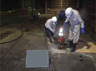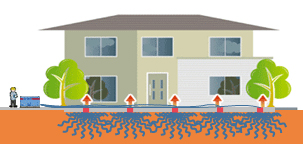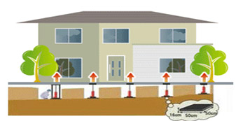 無公害で安全なグラウト材をコンクリートスラブ、基礎直下で注入して傾斜を復旧する工法です。