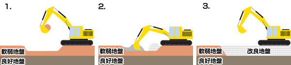 軟弱地盤でも専用重機を使わずに支持力を高められ、改良後は解体時の撤去も不要な環境配慮型です。
