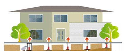 耐圧版を支持地盤に設置しジャッキを用いて傾斜を復旧する工法です。